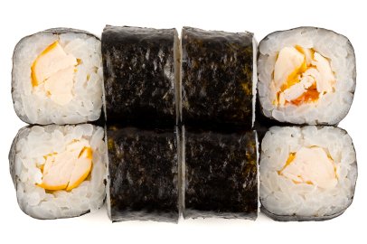 Рис, нори, креветка, сыр сливочный, томат, майонез, снежный краб,