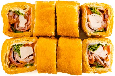 Курица, Нори, Помидор, Рис, Сухари панировочные, Сыр сливочный, Соус Фирменный,