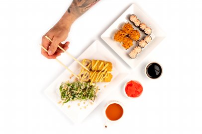Васаби, имбирь, соевый соус, Калифорния с крабом, Темпура спайси с курицей, Темпура снежный краб, Запеченная темпура с курицей, Запеченная креветка, Бекон ролл, Дайкон ролл,